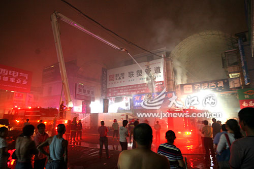 消防車廠家【m.wtxhbg.cn】新聞資訊:-昨晚10時10分許,位于南昌市西湖區(qū)建設西路聯(lián)信大市場一個儲存塑料管材的倉庫突發(fā)大火,南昌市消防部門緊急派出5個中隊、1個大隊前往救援,并出動了10輛消防車到現(xiàn)場。